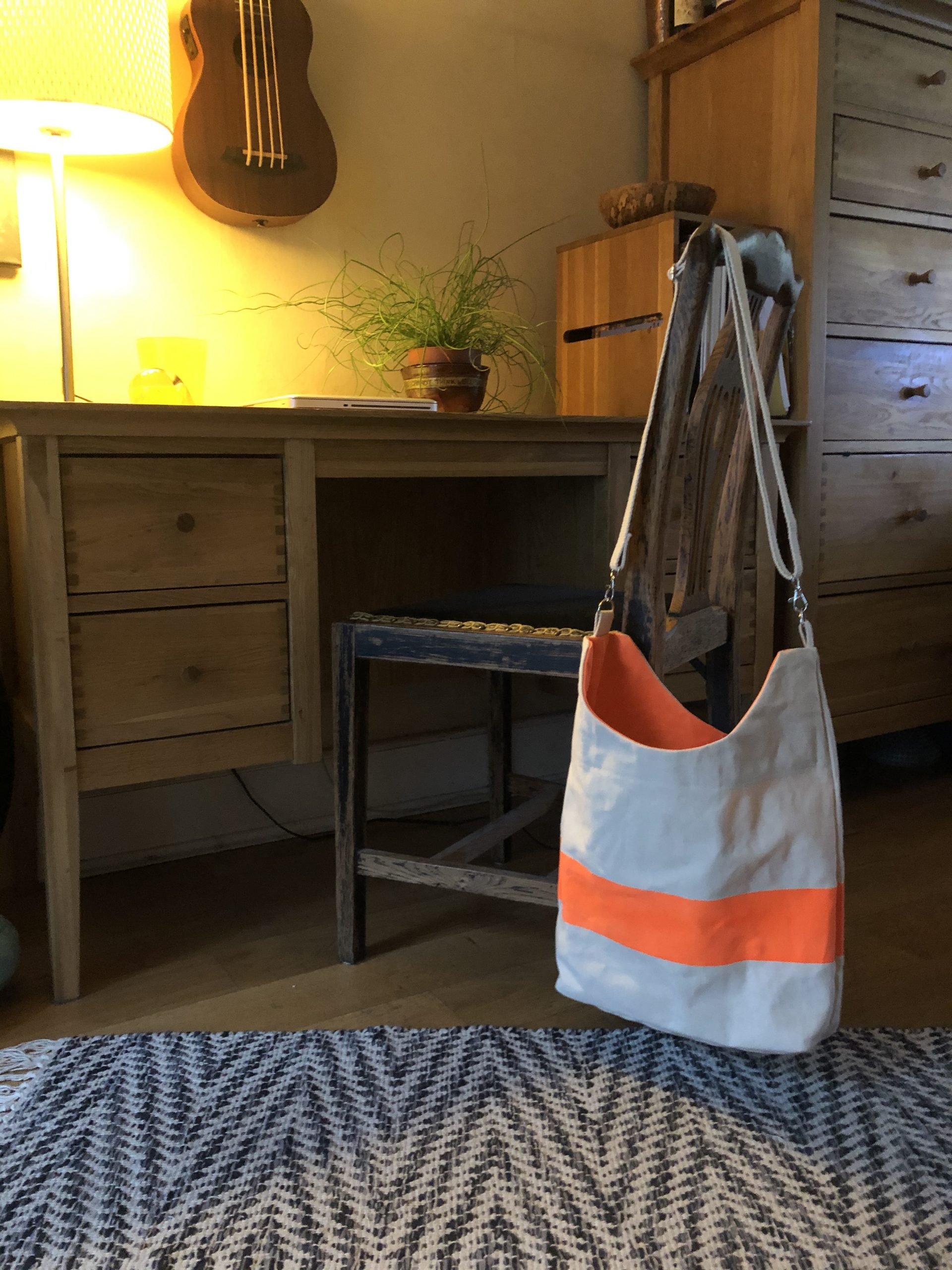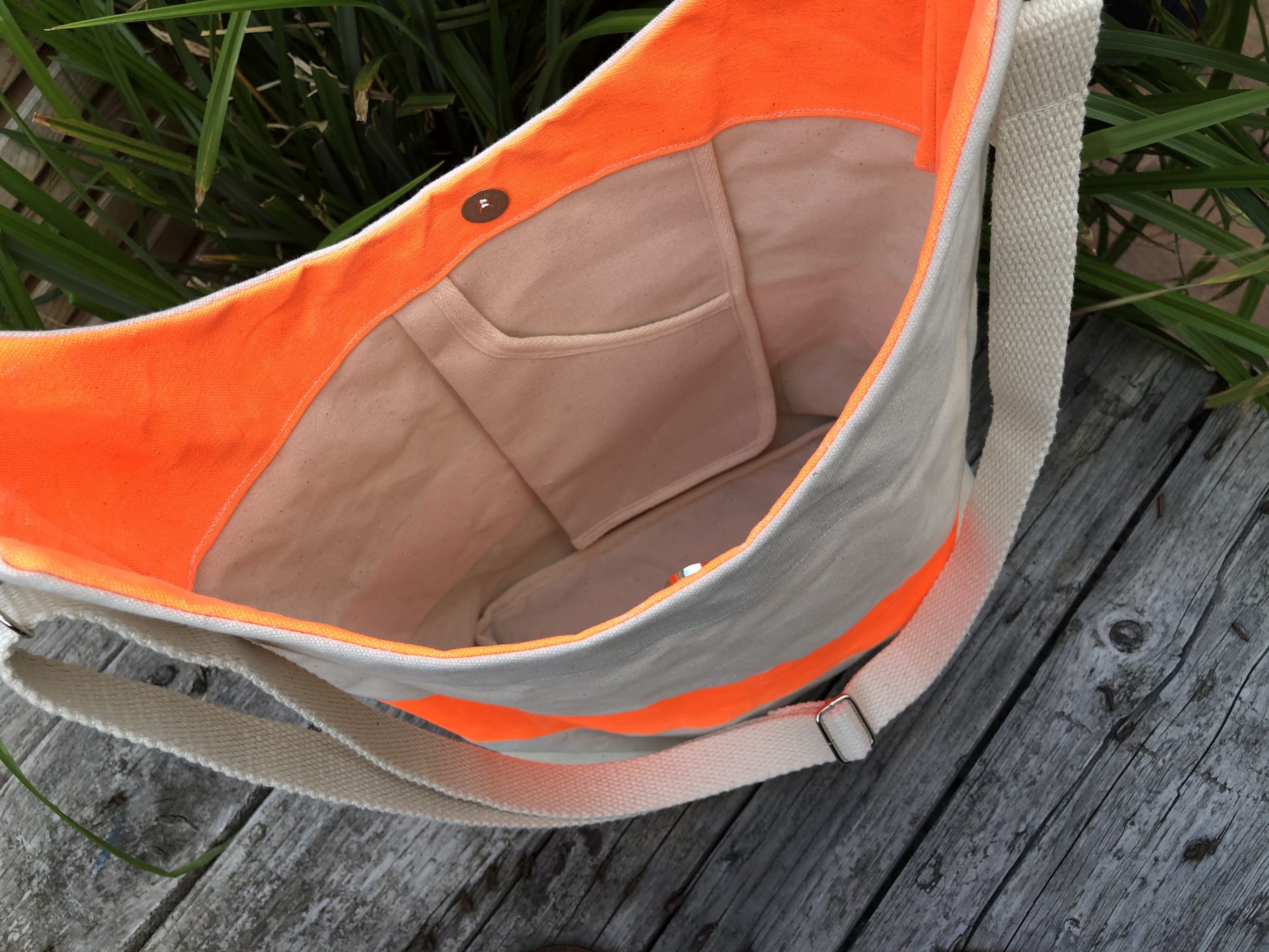 Made from 16 oz Cotton Duck Canvas, and some careful design, this shoulder bag is understated, fun – and hardly weighs a thing!